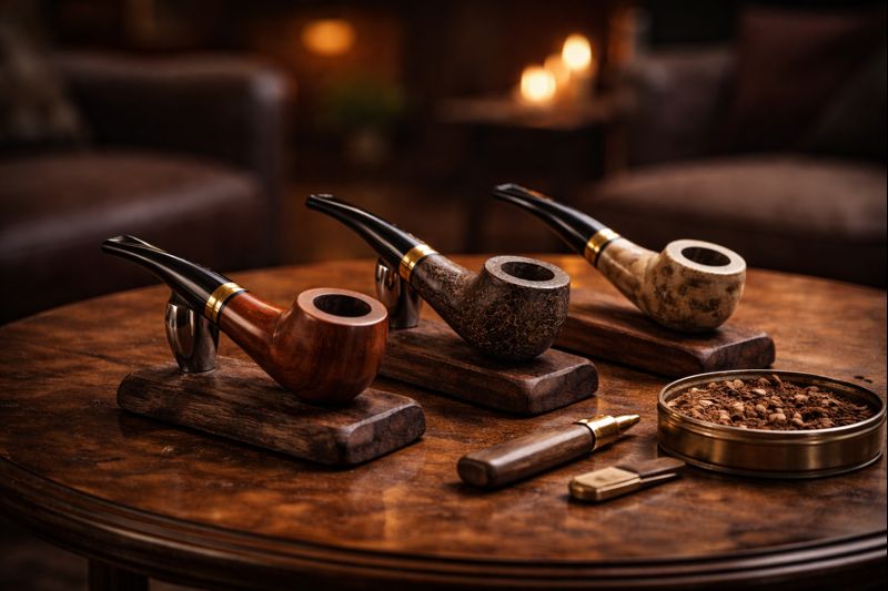 Wood Pipe, Billiard Pipe, Exclusive Set, Sherlock Holmes Pipe, Wooden Pipe