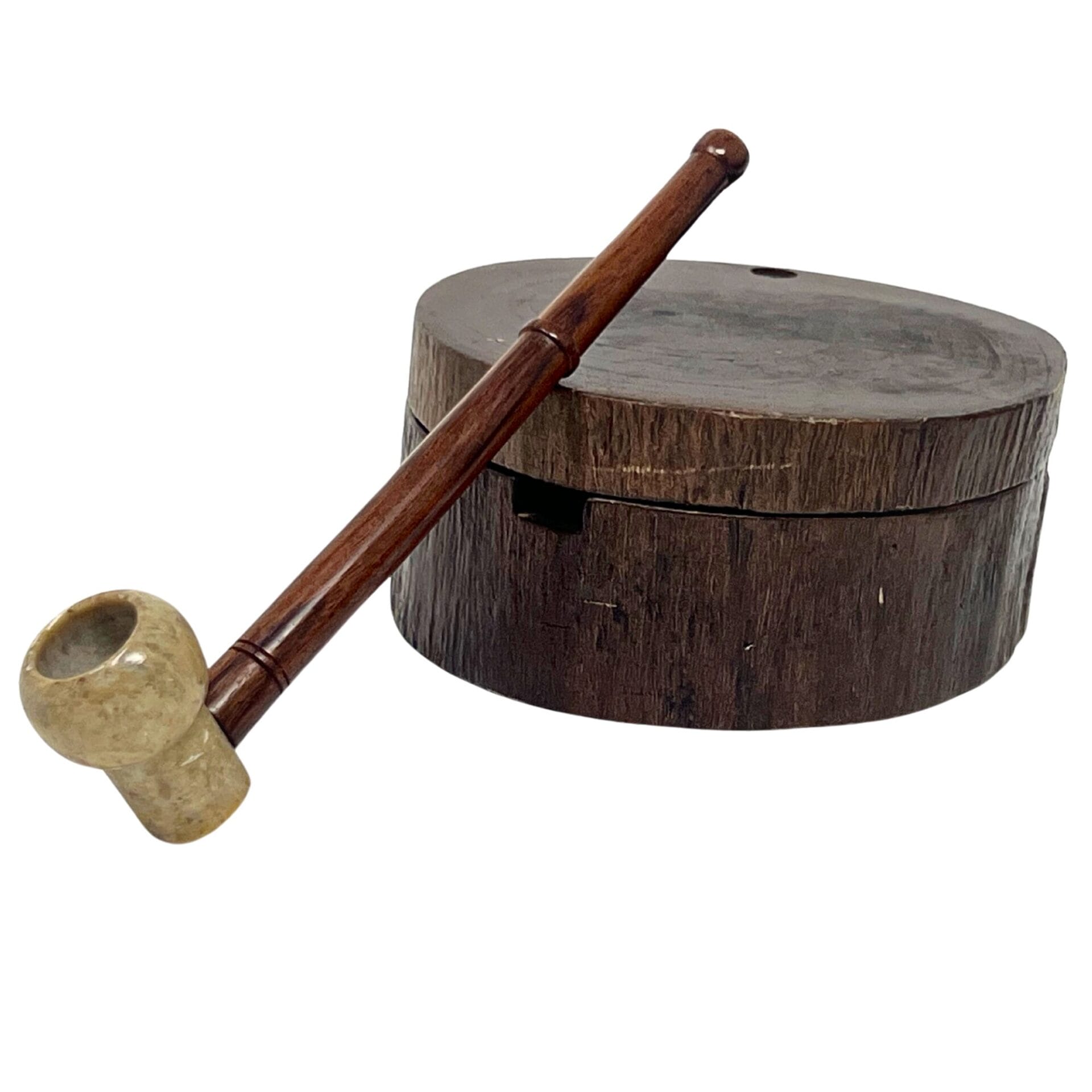 Matchpipe Roundbowl Stone wood pipe with Stone bowl & Wood stem Smoking Pipe 6 inch